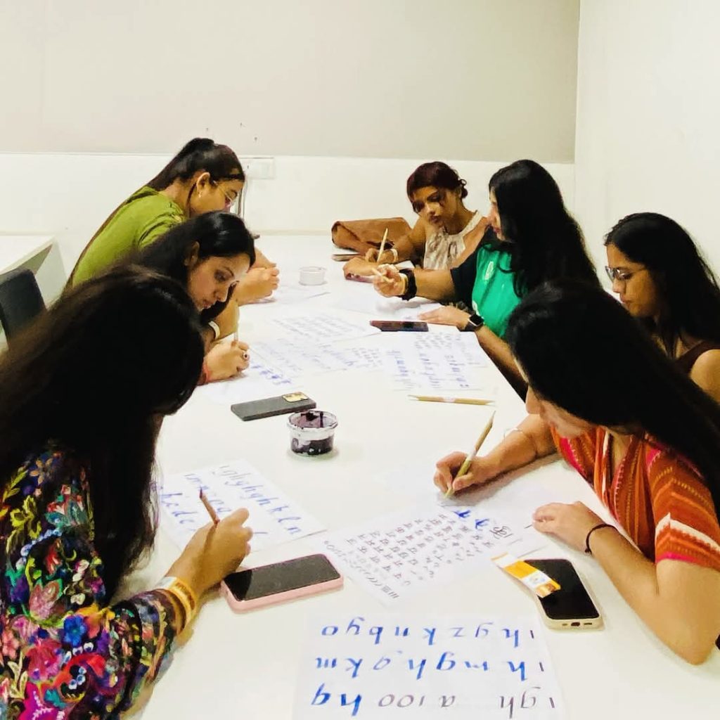 That’s why I often say — writing is meditation. It’s a deeply personal act that brings clarity, calmness, and connection to one’s inner self. I consider myself truly fortunate to have crossed paths with Inku Sir back in 2015 — a meeting that not only inspired me but also sparked my own journey into the world of calligraphy. His passion, discipline, and grace with every stroke became a guiding force for me.